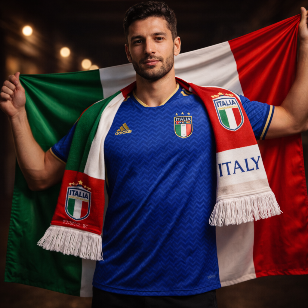 Este kit completo captura a essência da Seleção Italiana. Veste a camisola, enrola o cachecol e hasteia a bandeira – sente que estás totalmente unido à equipa e a milhões de torcedores. No estádio, na varanda, na rua ou em casa a vibrar com cada golo histórico. Porque apoiar Itália não é só comprar peças… é viver a emoção completa que dura para sempre.