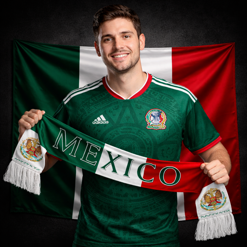 Este kit completo captura a essência da Seleção Mexicana. Veste a camisola, enrola o cachecol e hasteia a bandeira – sente que estás totalmente unido à equipa e a milhões de torcedores. No estádio, na varanda, na rua ou em casa a vibrar com cada golo histórico. Porque apoiar México não é só comprar peças… é viver a emoção completa que dura para sempre.