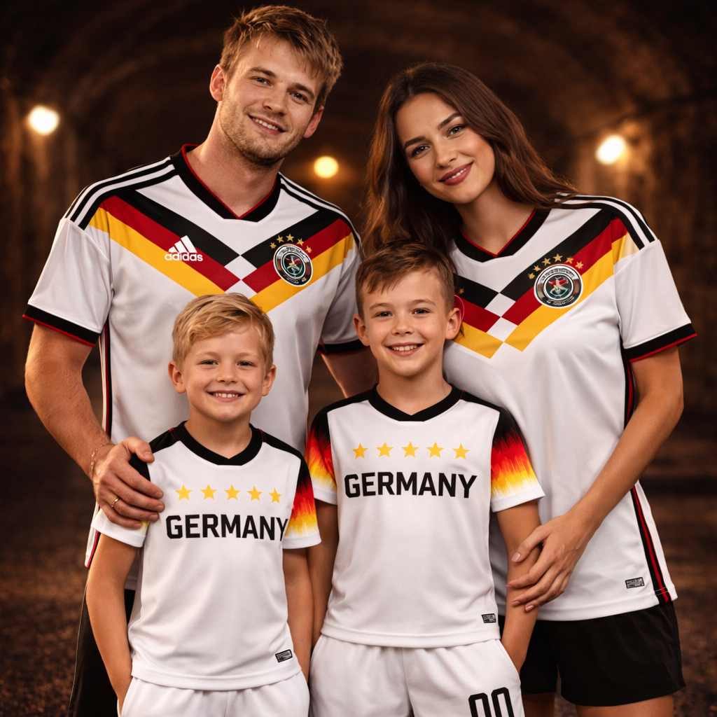 Este kit legado captura a essência da Seleção Alemã para toda a família. Vistam as camisolas, ponham os equipamentos nos vossos filhos s e hasteiem a bandeira juntos. Sintam que estão unidos à equipa e a milhões de torcedores. No estádio em família, na varanda a vibrar ou em casa a torcer pelo próximo golo histórico. Porque apoiar Alemanha não é só cultura… é uma emoção que se passa de pais para filhos e dura para sempre.