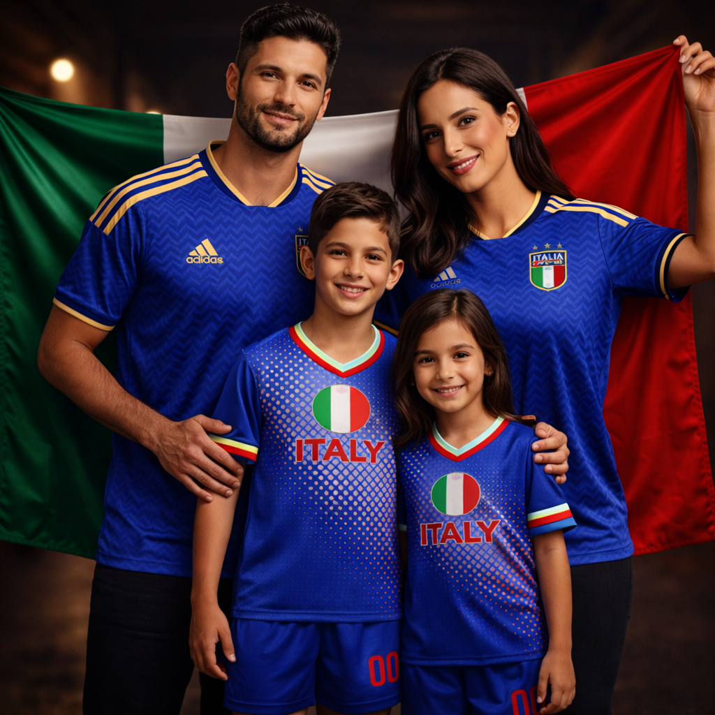 Este kit legado captura a essência da Seleção Italiana para toda a família. Vistam as camisolas, ponham os equipamentos nos vossos filhos s e hasteiem a bandeira juntos. Sintam que estão unidos à equipa e a milhões de torcedores. No estádio em família, na varanda a vibrar ou em casa a torcer pelo próximo golo histórico. Porque apoiar Itália não é só cultura… é uma emoção que se passa de pais para filhos e dura para sempre.