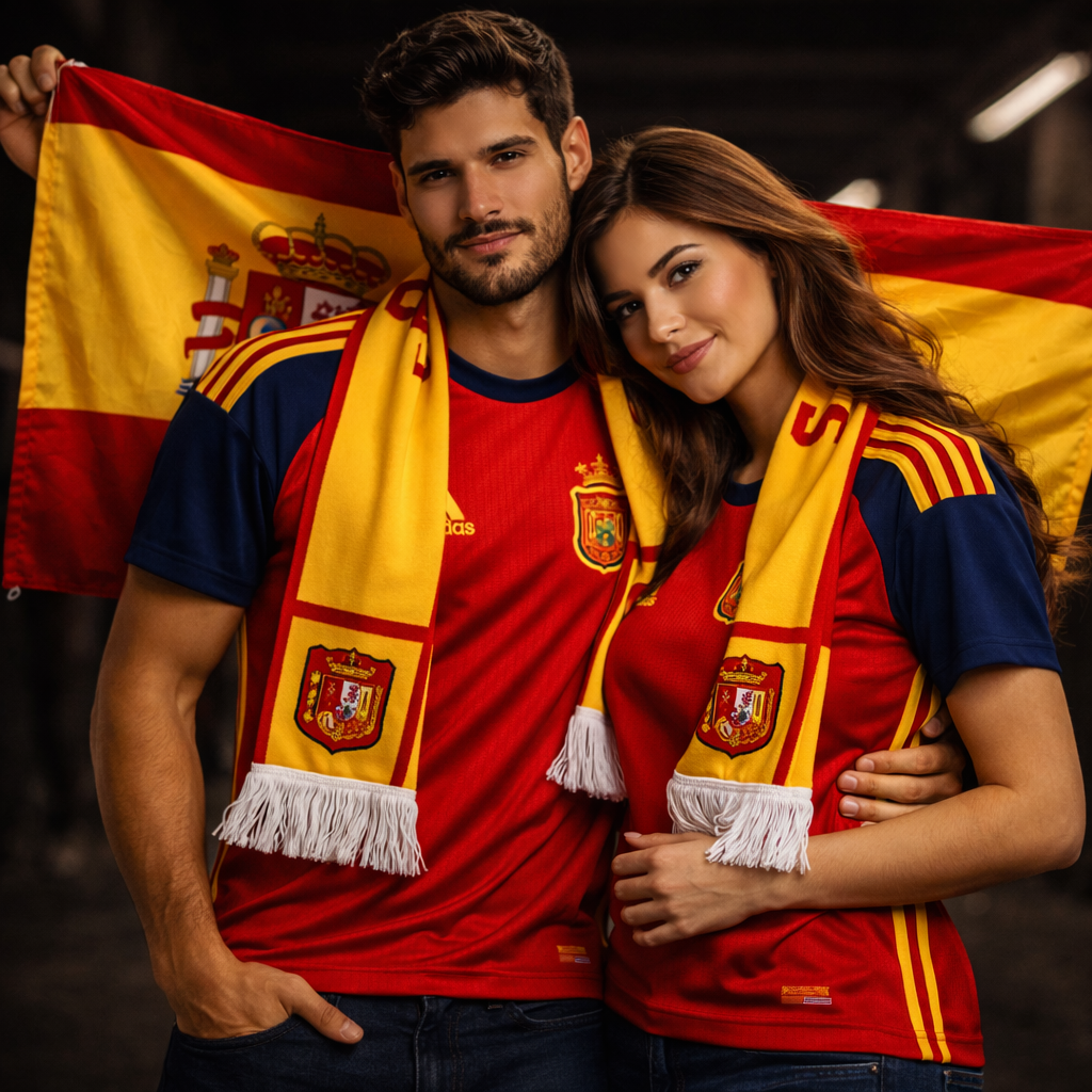 Este kit união captura a essência da Seleção Espanhola para casais. Vistam as camisolas juntos, enrolem os cachecóis ao pescoço e hasteiem a bandeira. Sintam que estão unidos à equipa e a milhões de torcedores. No estádio de mãos dadas, na varanda a vibrar juntos ou em casa a torcer pelo próximo golo histórico. Porque apoiar Espanha não é só cultura… é uma emoção partilhada que dura para sempre.