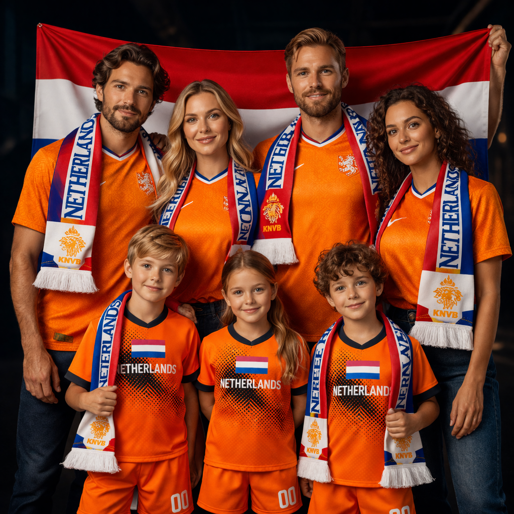 Este kit tribo captura a essência da Seleção Holandesa para famílias grandes ou grupos de amigos. Vistam as camisolas, enrolem os cachecóis, ponham os equipamentos nos mais pequenos e hasteiem a bandeira juntos – sintam que estão unidos como uma verdadeira tribo de torcedores. No estádio em multidão, no churrasco a vibrar ou em casa a torcer pelo próximo golo histórico. Porque apoiar Holanda não é só cultura… é uma emoção coletiva que une o pessoal todo e dura para sempre.